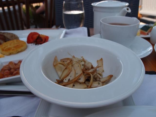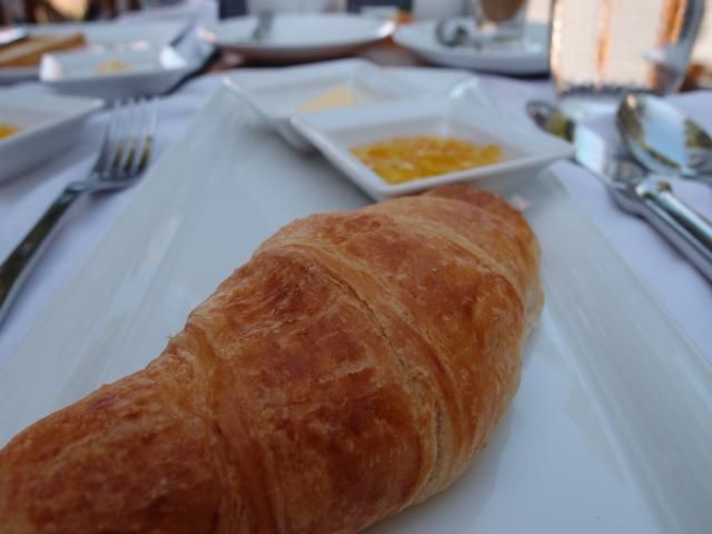 貪新的我就在餐牌裡自選了一些食物, 暖呼呼的牛角酥、水果盤、炒野菌