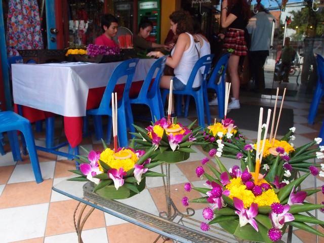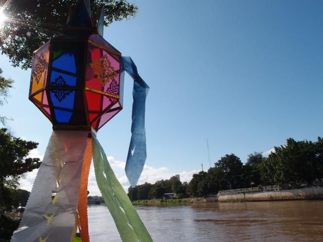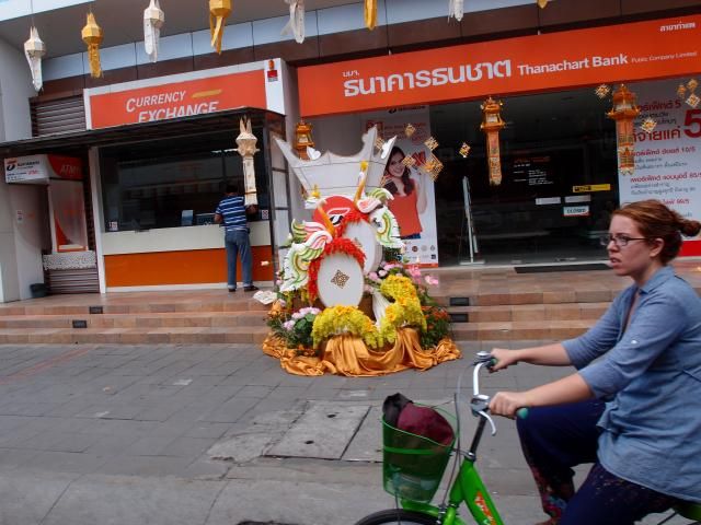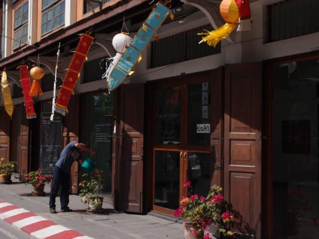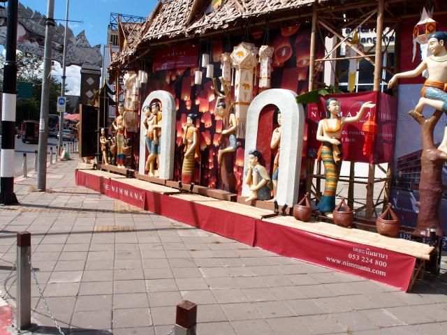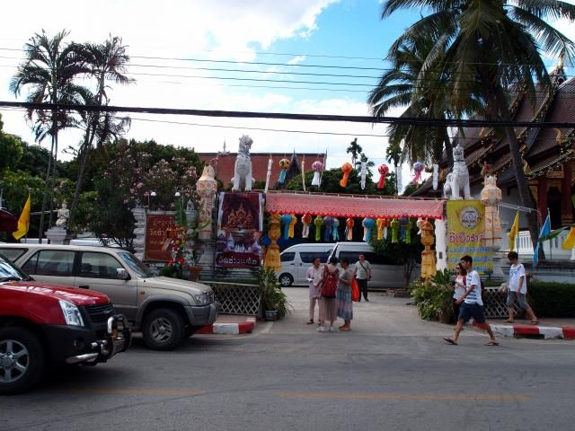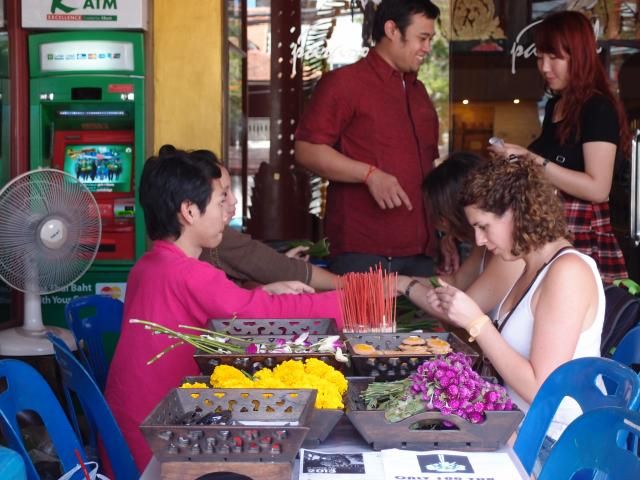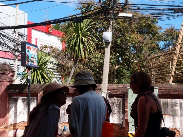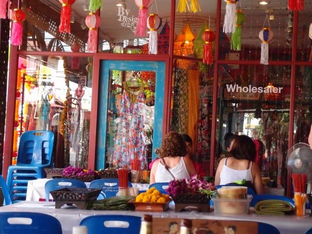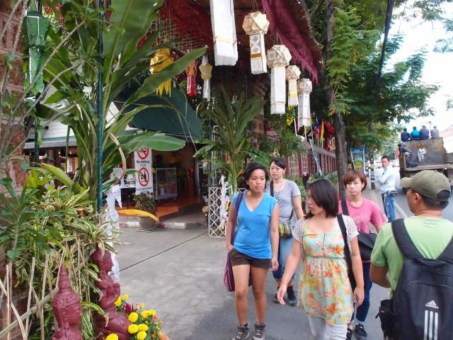 快要到達的時候, 由於天氣熱又迷路, 老公說不要再找, 直接再坐車好了。一個tuk tuk司機走上來並說$120bhat載我們去, 正當我們在看那地址時, 一位國內的小姑娘就跑上來說:"你們去萬人天燈吧? 店就在前面右拐的地方啊!"噢...還好有她啦, 來過清邁都幾次的我卻迷路, 羞死了!