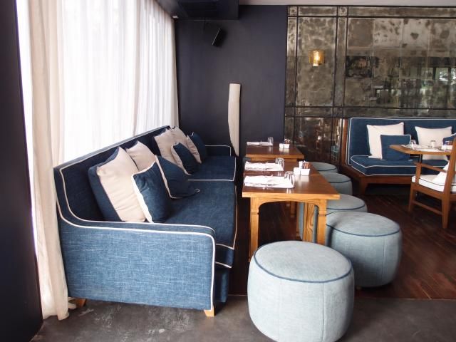 室內以海軍藍和白為調子, 加上有大量的玻璃和户外的光源, 感覺比昨天的黑沉沉好。廚房亦只用了玻璃去間隔, 感覺整體更大了。