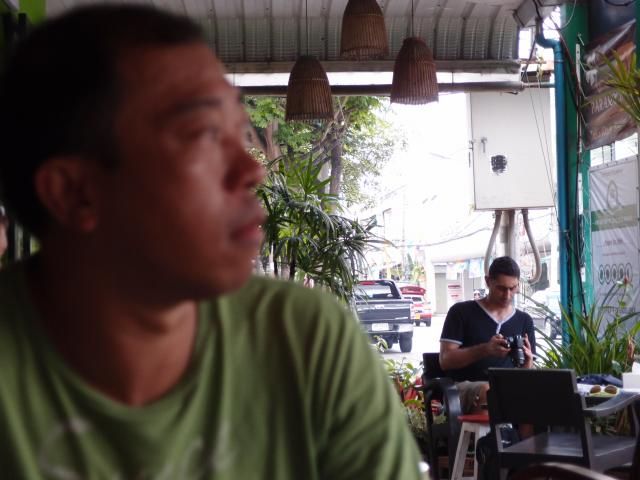 領著幾個小妹的, 是一個俊俏的混血兒男生, 可是仍只可用泰文溝通, 聰明的老公, 永遠都會先視察人家的食物, 指一指他想吃的, 他常說根本不用懂得泰文也能吃到啦!