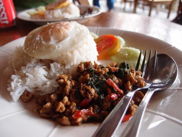 香噴噴的辣椒金不換肉碎煎蛋飯, 我要多吃一點, 因為今天將沒有下午茶, 而晚餐也不知要延至何時...