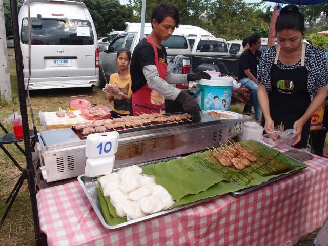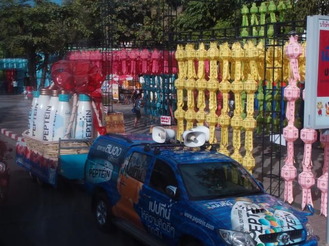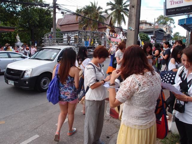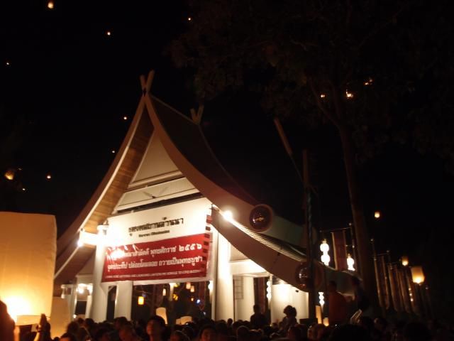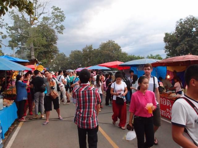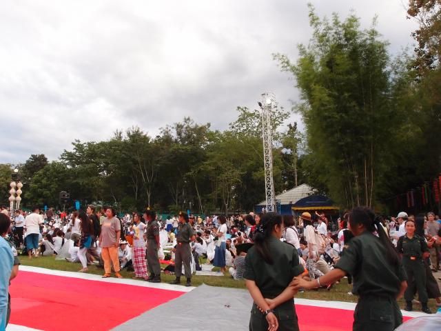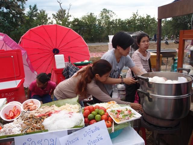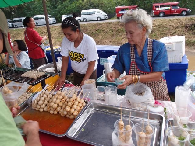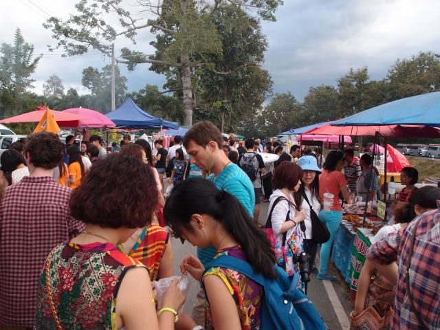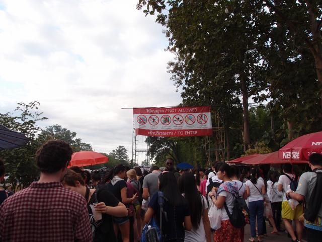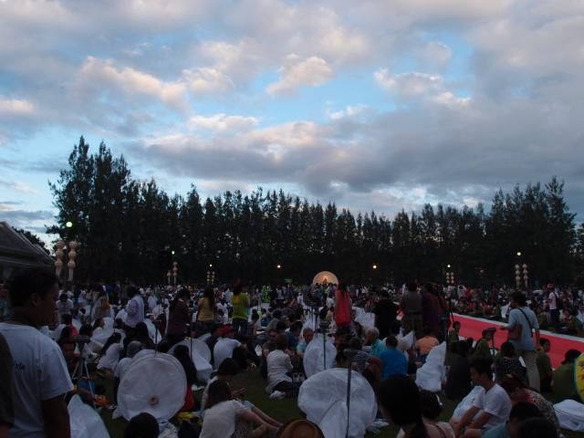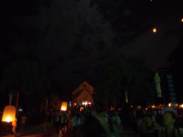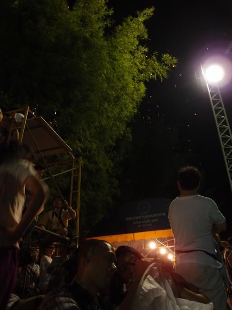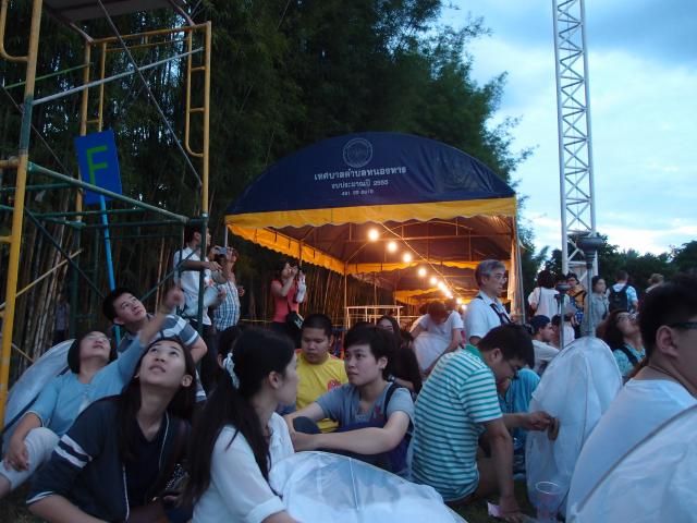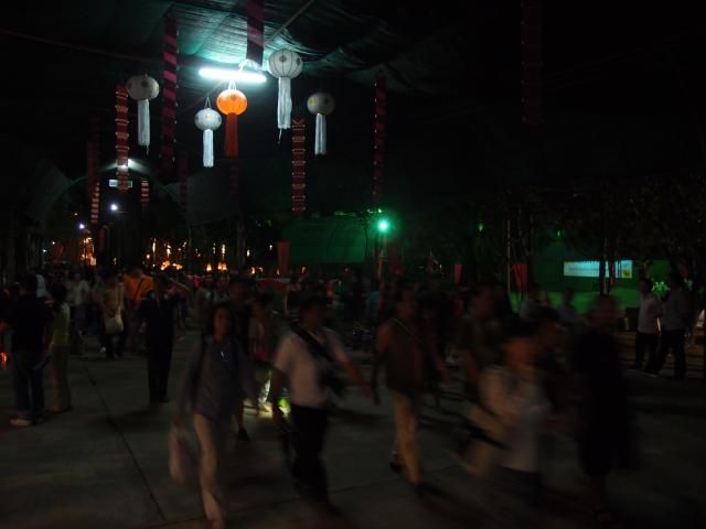 原來南門外是個小市集, 賣的主要是吃的, 而且有衣物, 也有天燈。可是, 千萬不要在這裡購買天燈進場, 那是嚴禁的。我們從場內買的那兩個, 也讓我用盡所會說的泰文來向埸外的義工生解釋才能帶回去....害羞死了!