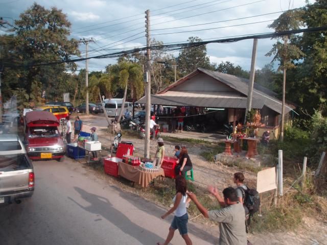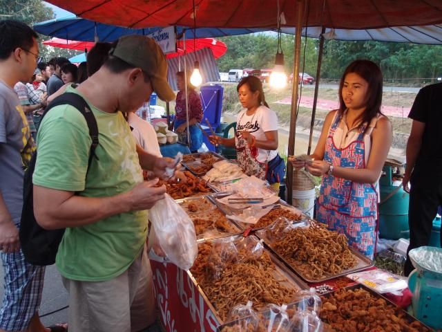 經過約45分鐘的車程, 我們最後在半夜12:30回到集合點Wat Chang Taem的對面。也許是太餓了, 整個人像有點虛脫一樣, 我們只知道想要吃點東西, 很夜已深了, 哪裡還有呢?