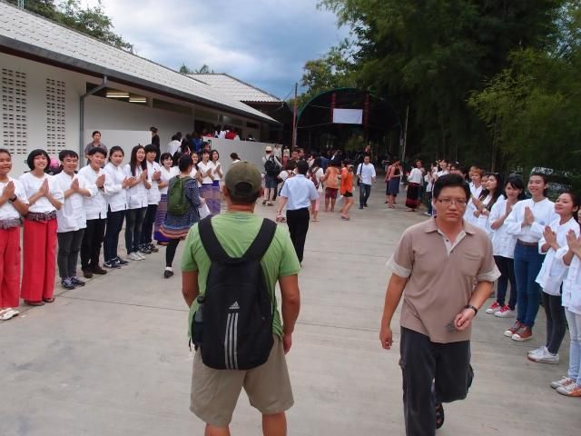 也許今年來自中港台的參加者多了, 埸刊除了泰文和英文, 也增加了中文。此外, 來自Mae Jo University的義工生們, 也練了好一些國語的歡迎語。看著他們充滿熱情的的叫喊, 我也停下來要好好欣賞一下, 並用vi所懂得的泰文向他們道謝。