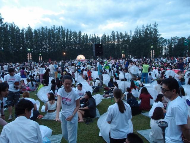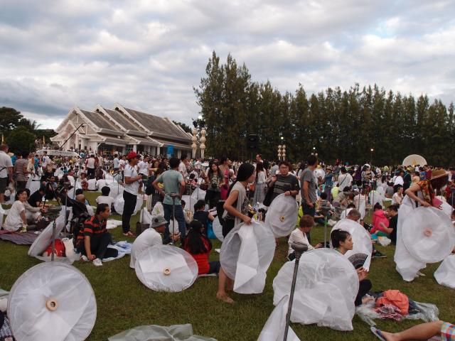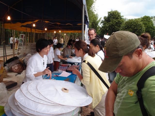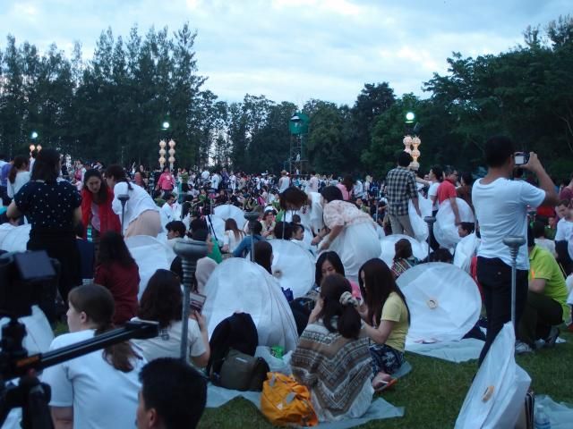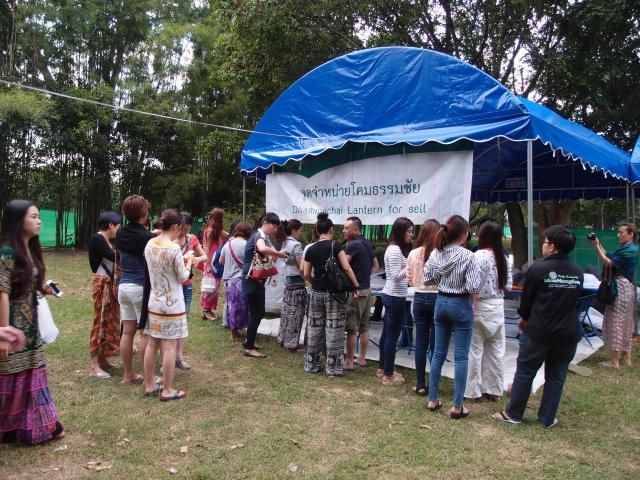 終於到達了放天燈的埸地, 現在才四時吧, 怎麼已像滿座了一樣? 眼看這個場景, 我只記得自己茫無頭緒了....唯有跟著其他人去買大會指定的天燈, 它是用對自然環境不造成傷害的物料Dhaminachai所製, 雖然收費$100bhat一個比在外面賣的貴, 但除成本外, 收益將撥捐作慈善用途。