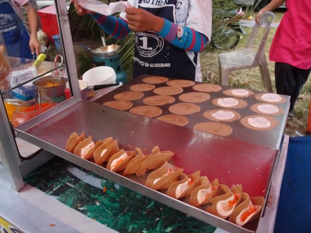 雖然並不餓, 老公還是買了豬肉丸串燒和炸雞塊, 我也買了椰漿的薄脆, 其實還有很多東西想吃, 但心想還要吃晚餐就放棄了。