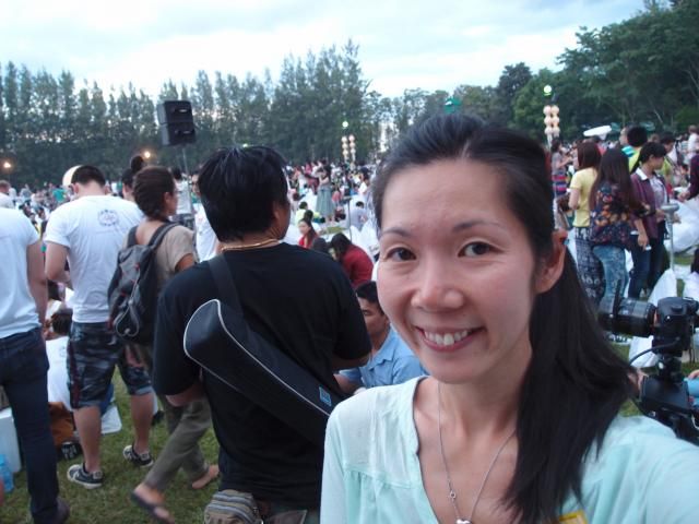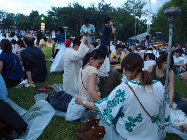 我們的週圍也真的擠滿了後來的人啦, 來來來~大家擠一點吧。最後, 現場的義工們把草地的天燈區用欄柵圍起來以免發生意外。