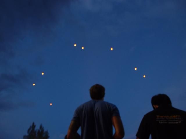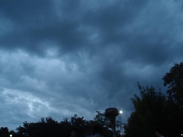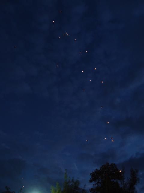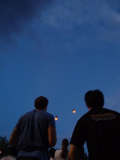由五時多, 天空就開始浮着疏落的天燈...它們是由場外的遊人所放的呢! 這都令等待的時間變得有更有趣。