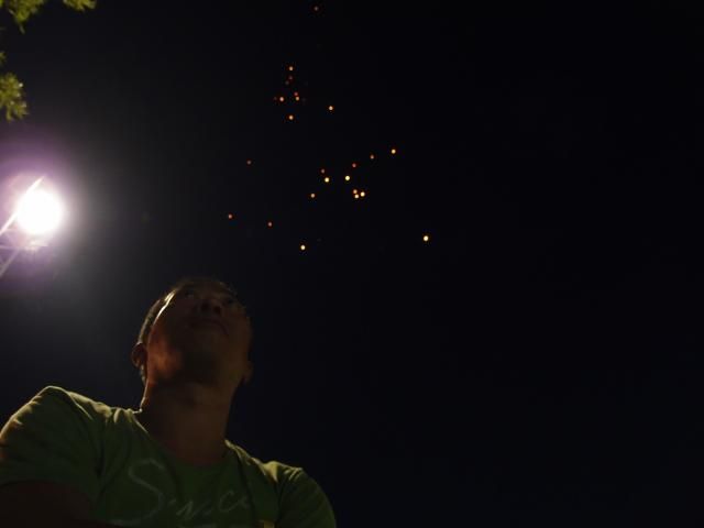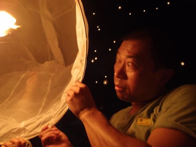 老公和其他人也心急了, 還未等待大會指示就把天燈燃點了, 噢~來不及了, 要起飛啦!