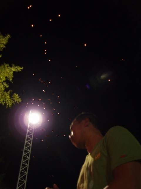 八時半, 大會再宣佈大家開始燃點天燈, 此時, 週圍都充滿了快要升空的天燈, 任憑你眼睛往哪裡轉, 也只會看到充滿笑容和希望的臉, 我真的深深的感動了。