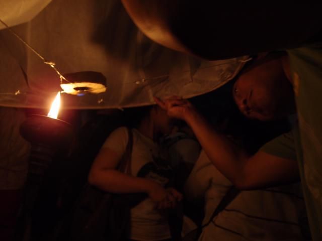 吃飽後在和暖的車廂中, 不到一會就睡著了。再醒過來的時候也已到目的地附近, 見到有很多自行來的參加者, 一路上也有賣天燈、水燈和各式小吃的攤販, 好期待呢!