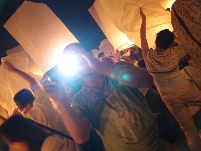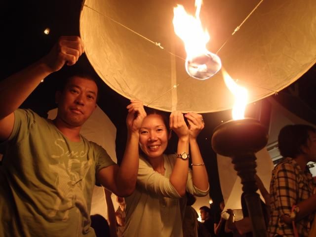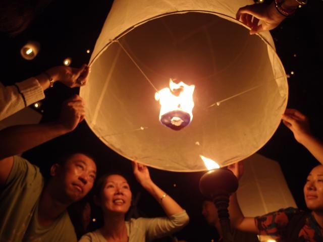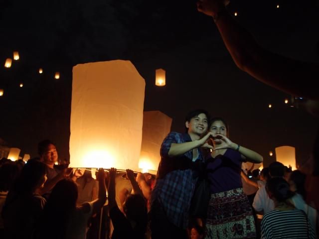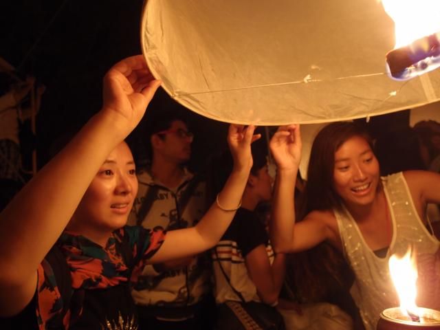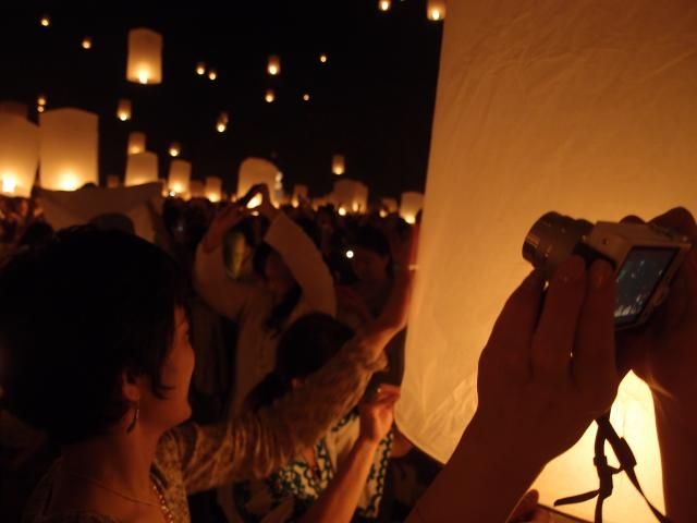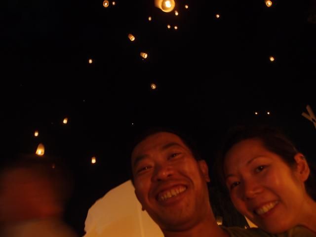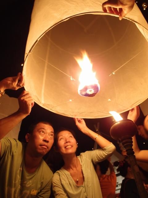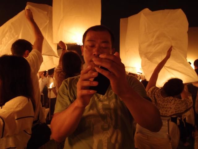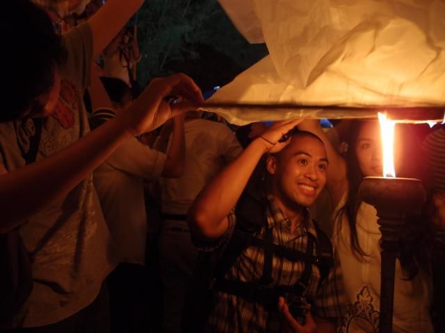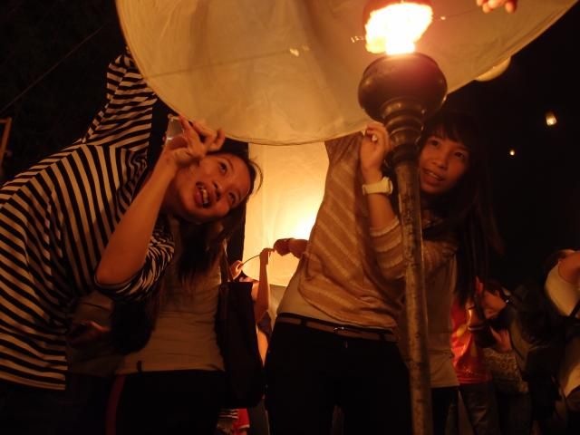 雖然你我互不相識, 也來自不同的國家, 但很高興我們有緣一起放這個天燈! 我們還交換了照相機代互拍了。