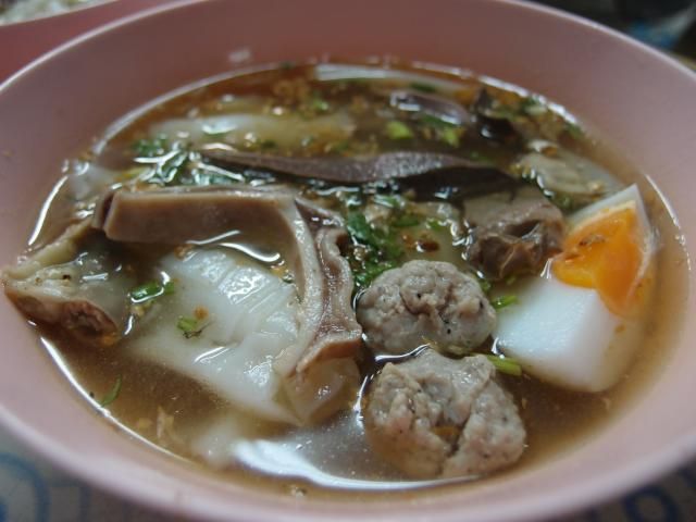 老公可吃了兩碗這粥, 再點了碗粿汁。有各式的豬內臟、滷水蛋和寬條粉, 湯頭有濃且甜的豬骨味道, 少不了msg....但我卻常常把它清掉~