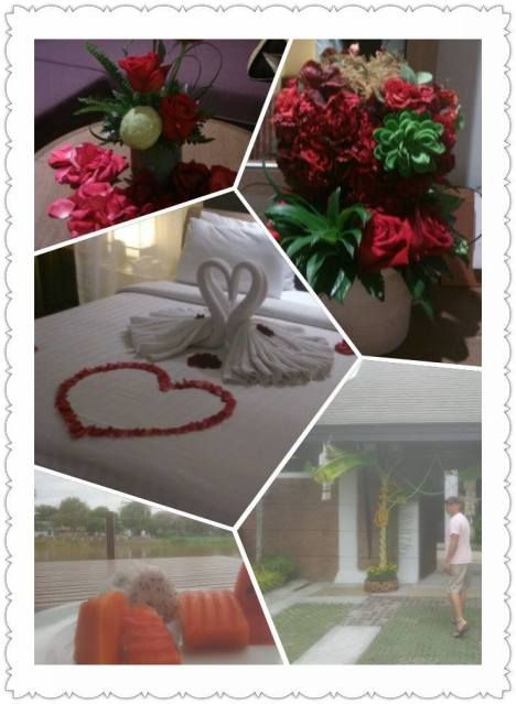 打開房門, 那歡迎我們回來還在燃點著的香茅味道香薰先讓我舒緩下來。 Khun Aom還特意的安排了一對毛巾天鵝和玫瑰花瓣拼出了溫馨的睡床佈置, 加上桌上的心型玫瑰花座, 真的很開心可以回到這裡。我並沒有告知她這次來是興祝什麼, 只是她細心的在我的facebook看到我之前發佈的相片和訊息才得到如此體貼的安排。
