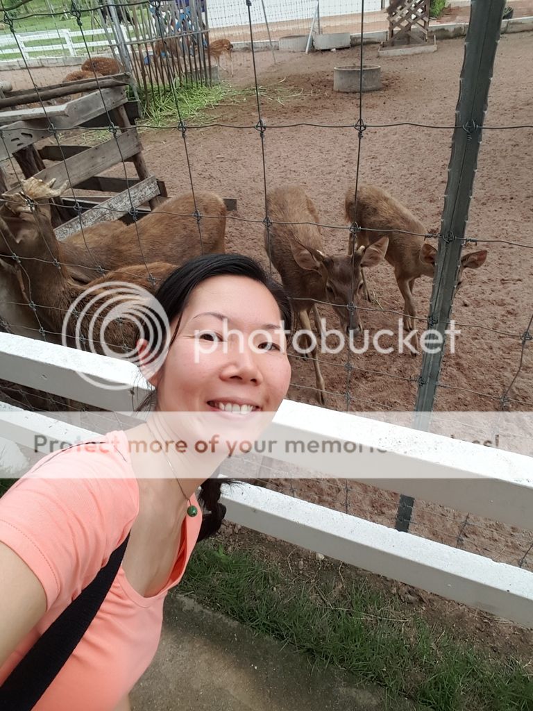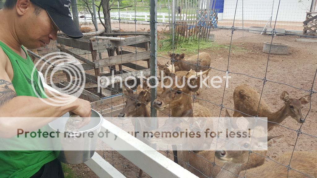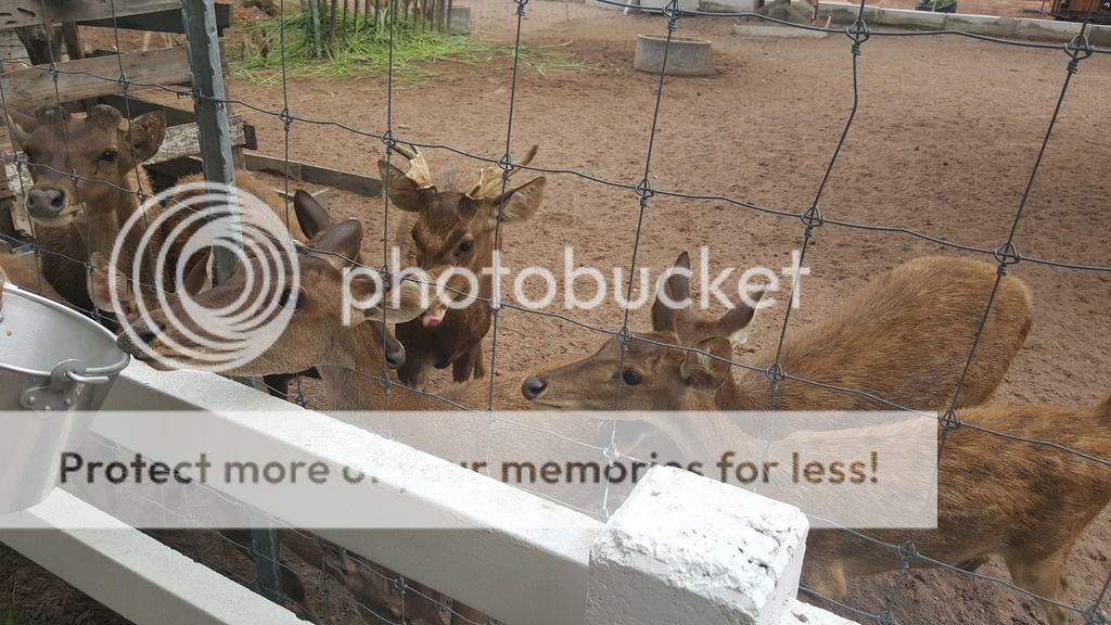 這裡除了羊之外,還有鹿,別看他們無精打采的,買了一包$20bhat的小吃,放在餵食筒裡,才聽到飼料“冬冬”響,牠們都向我們衝過來,像今天還未吃飯一樣呢!