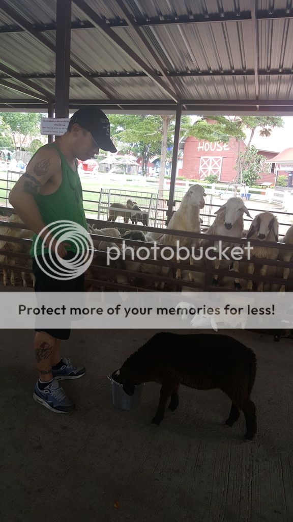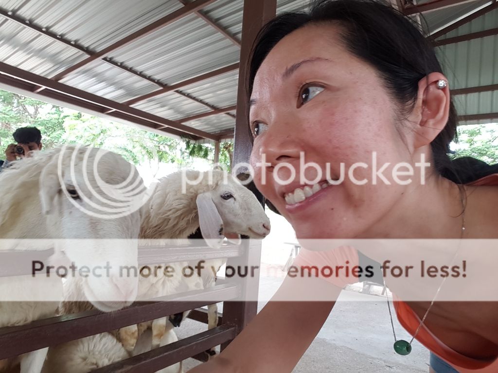 不遠處,傳來如像合唱團一樣的聲音,可是卻只有一個音調,也就是這裡的主角~羊。從未親身接近過牠們,撫着牠們的皮毛又捲又厚,和我的貓咪很不一樣呢!牠們一見到我們拿着奶瓶,就蜂湧的衝過來,高低不一樣的“咩咩”叫聲,就有如泰國小孩子們熱情的大叫“媽媽”(泰語媽媽的讀音mea),真令我這個過期大孩子十分興奮呢!謝謝牠們,我真的很開心哦。